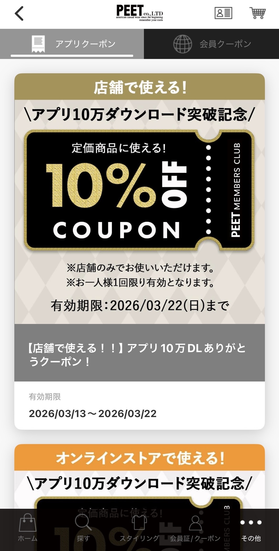10万DL突破の感謝の気持ちを込めて、10%OFFクーポンをアプリ内にて配布中!