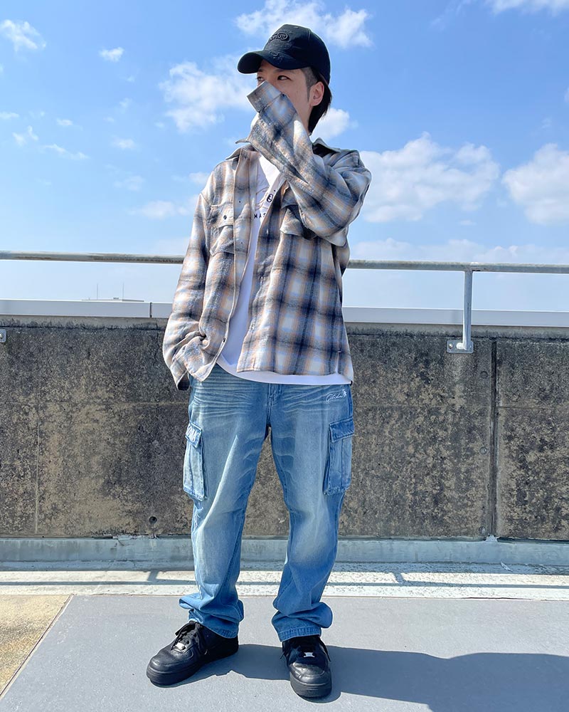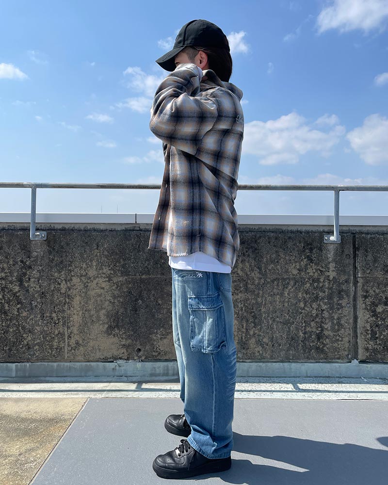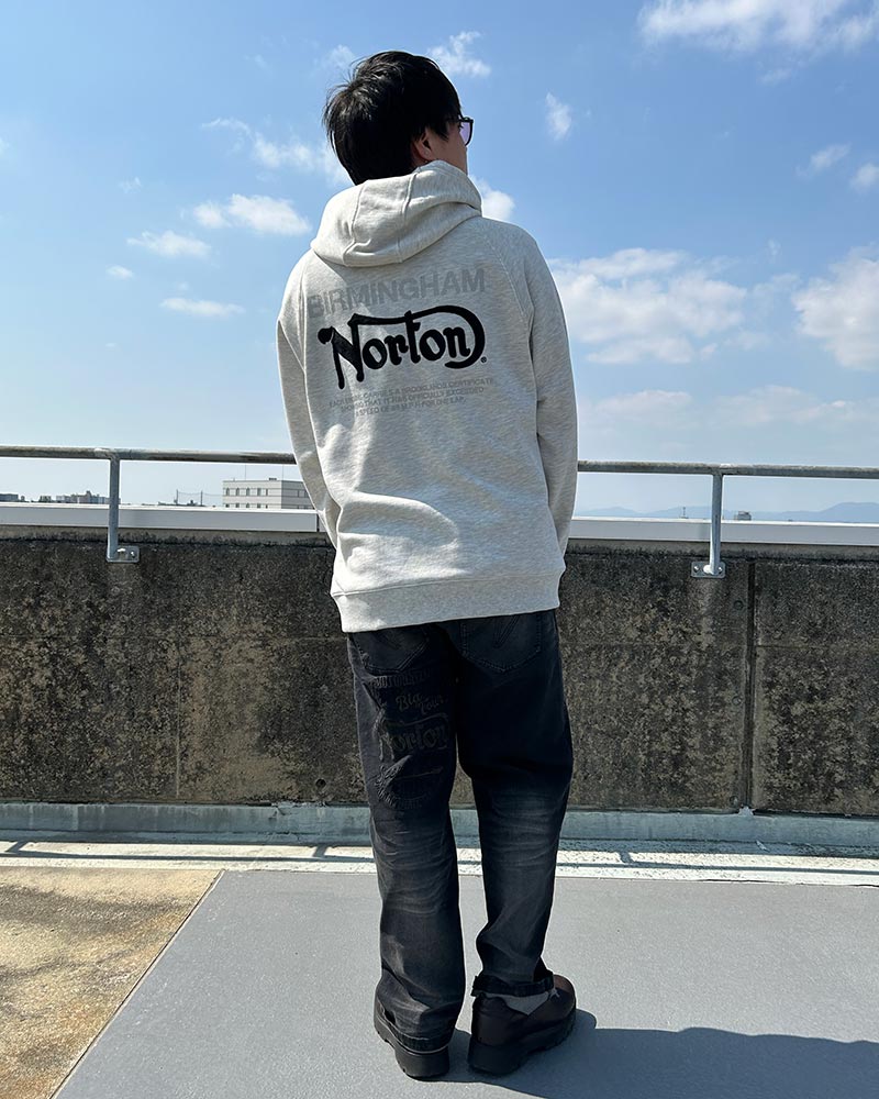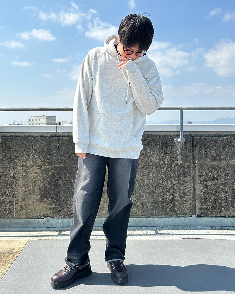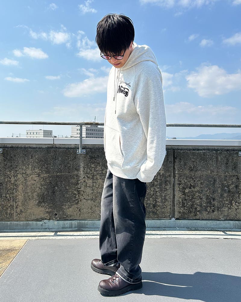 10℃~14℃は風が吹くと少し肌寒く感じる時期ですので生地感、色味と少し温かみのあるNORTONのプルパーカーをメインにコーデを組みました。パーカー、デニム共にフロントはシンプルですが、バックデザインはしっかりとした刺繍デザインが施されておりブランドファンのお客様にも気に入って頂けるアイテムに仕上がっていると思います!ボトムのシルエットも太すぎず細すぎずなシルエットですので幅広い世代のお客様にお勧めです。