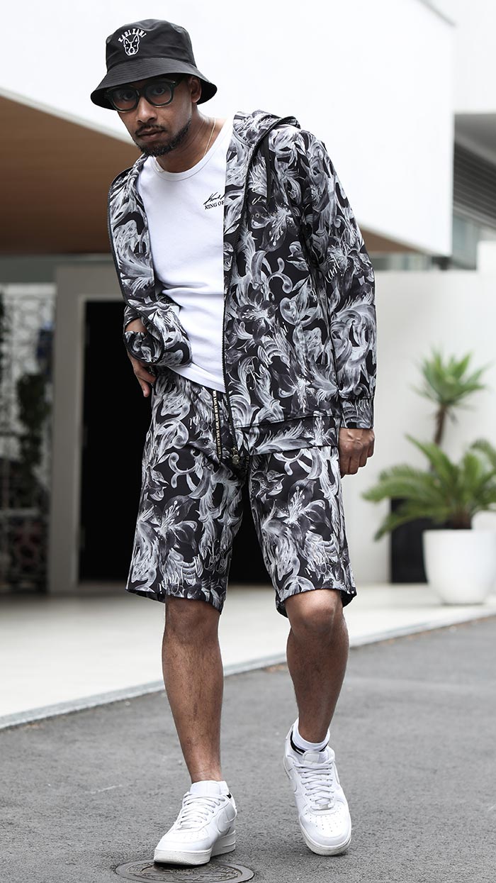 17~18世紀にかけてヨーロッパで発展した芸術様式を反映した バロック柄とユリの花をMIXした大人な雰囲気漂うパーカー&ショーツ。