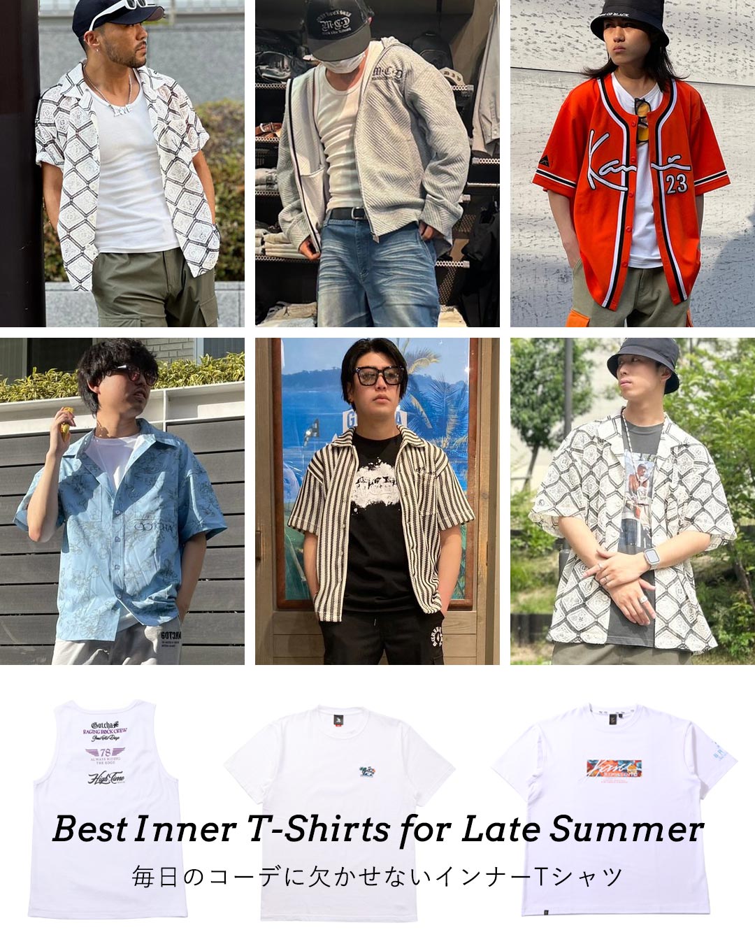 夏の名残りを感じながらも、朝夕は少しずつ涼しさが漂い始める季節。晩夏から秋にかけては、Tシャツをインナーに仕込んだり、レイヤードで見せたりと、着こなしの幅が広がります。定番カラーからデザイン性のある1枚まで、この季節だからこそ楽しめるTシャツスタイルをご紹介します。