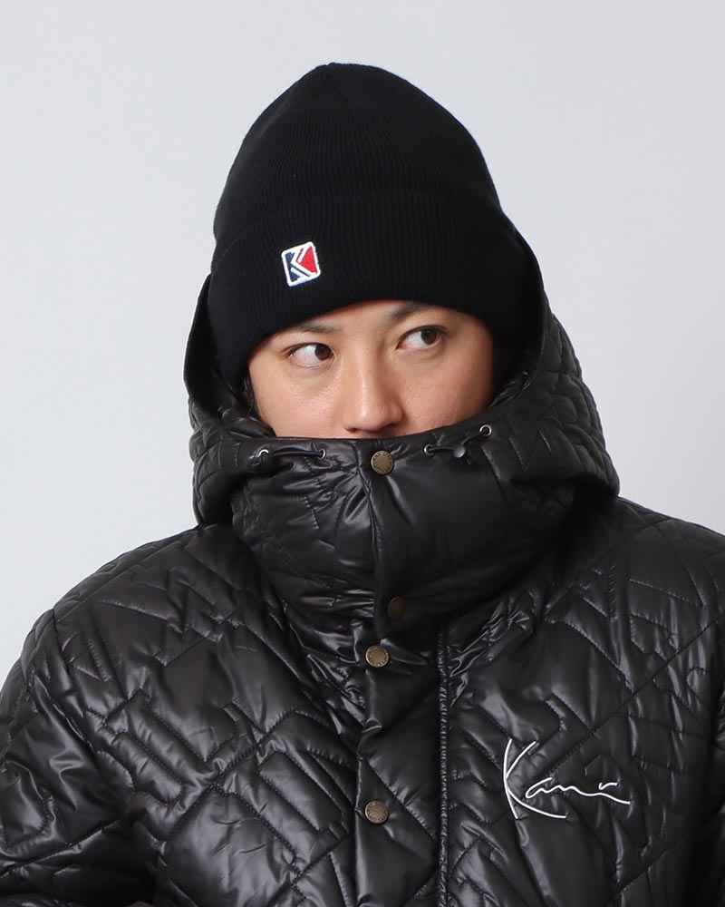 とにかく海風がさーーーーむいので、軽くて暖かいKARL KANIのダウンジャケット×ニット帽をチョイス!