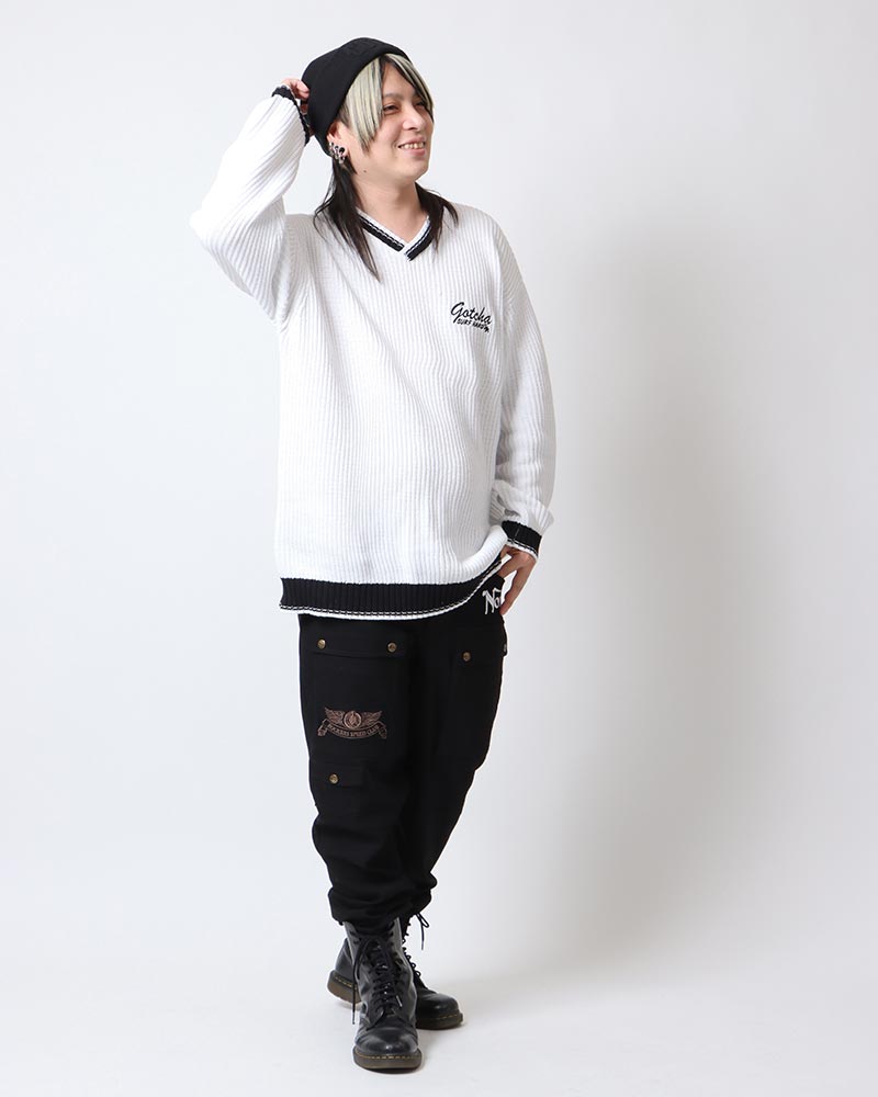 ニットはシンプルめなVネックですので、年齢・性別を問わずオススメです。