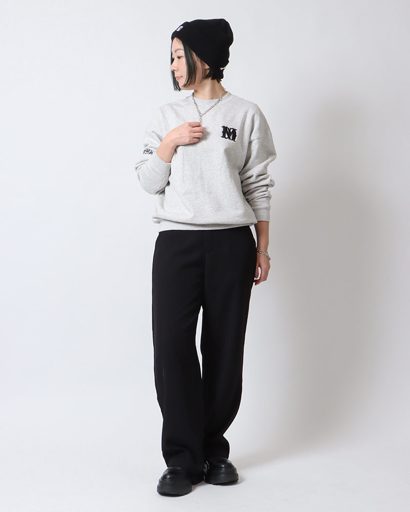 初詣の後は新年会!アウターを脱ぎ捨てた後もキレイめパンツとモノトーンスウェットの組み合わせで、カジュアルダウンし過ぎないように。