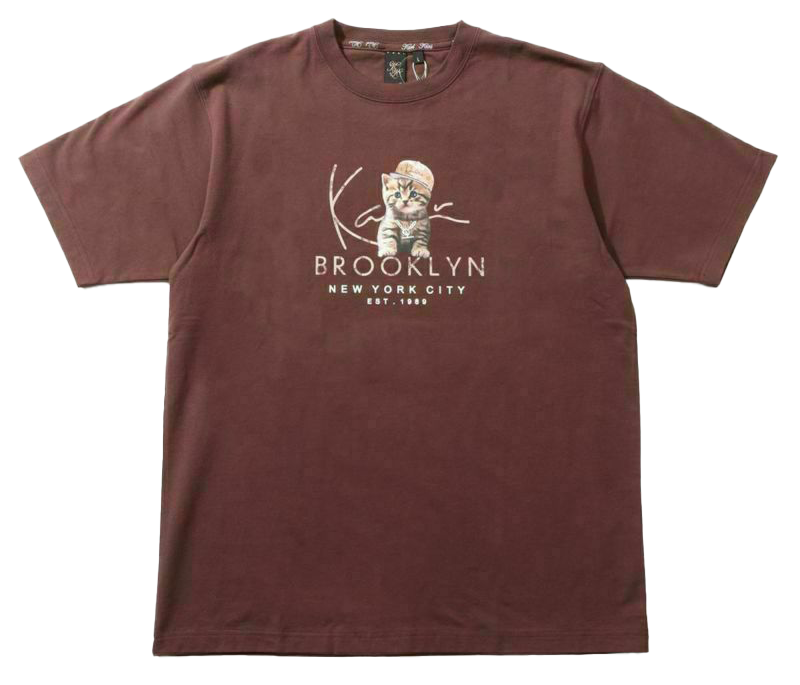 全体をブラウン系統の色味でまとめ、統一感を出してみました。男女共に着やすいキャットTなので、性別を問わないカラーとアイテムの組み合わせがポイントです。