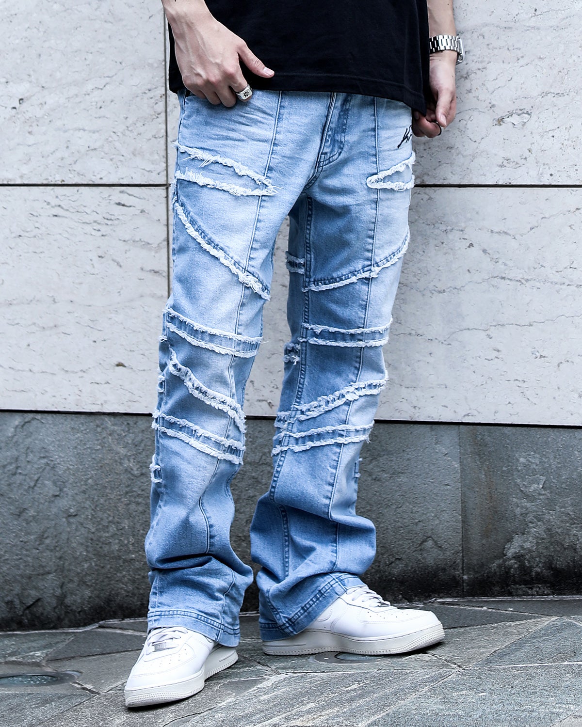 [Karl Kani] SL ストレッチ フリンジ フレア デニムパンツ