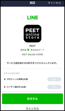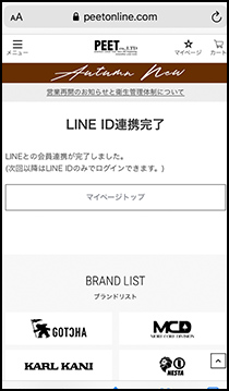 PEET ONLINE STOREのLINEアカウントと連携すると、