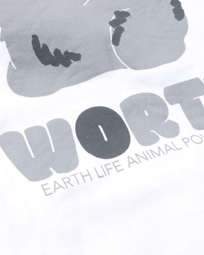 ・さらに「WORTHY」「EARTH LIFE ANIMAL POWER GOTCHA」といった文字もプリントされており、地球や自然、命のつながりなどサーフブランドらしい個性とメッセージ性がプラスされています。