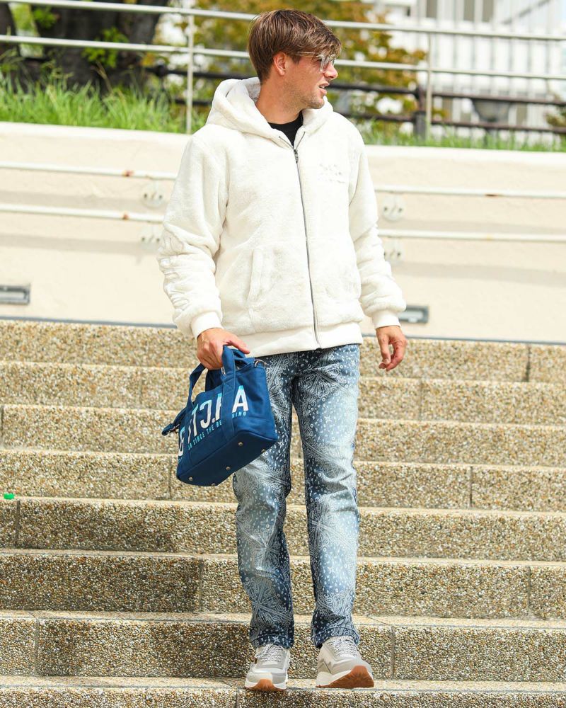 ・ジップパーカーですが、ファー素材などで暖かみがあると共に、ややゆとりのあるサイズ感になっていますので、アウターとして着ていただけます。
