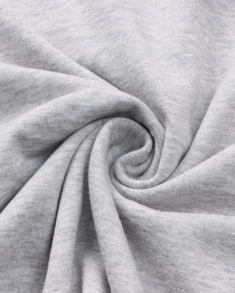 ボディは杢感がさりげなく感じられる生地で、無地でも表情豊か。ドロップショルダーのシルエットはリラックス感がありつつ、今っぽいこなれた雰囲気を演出します。