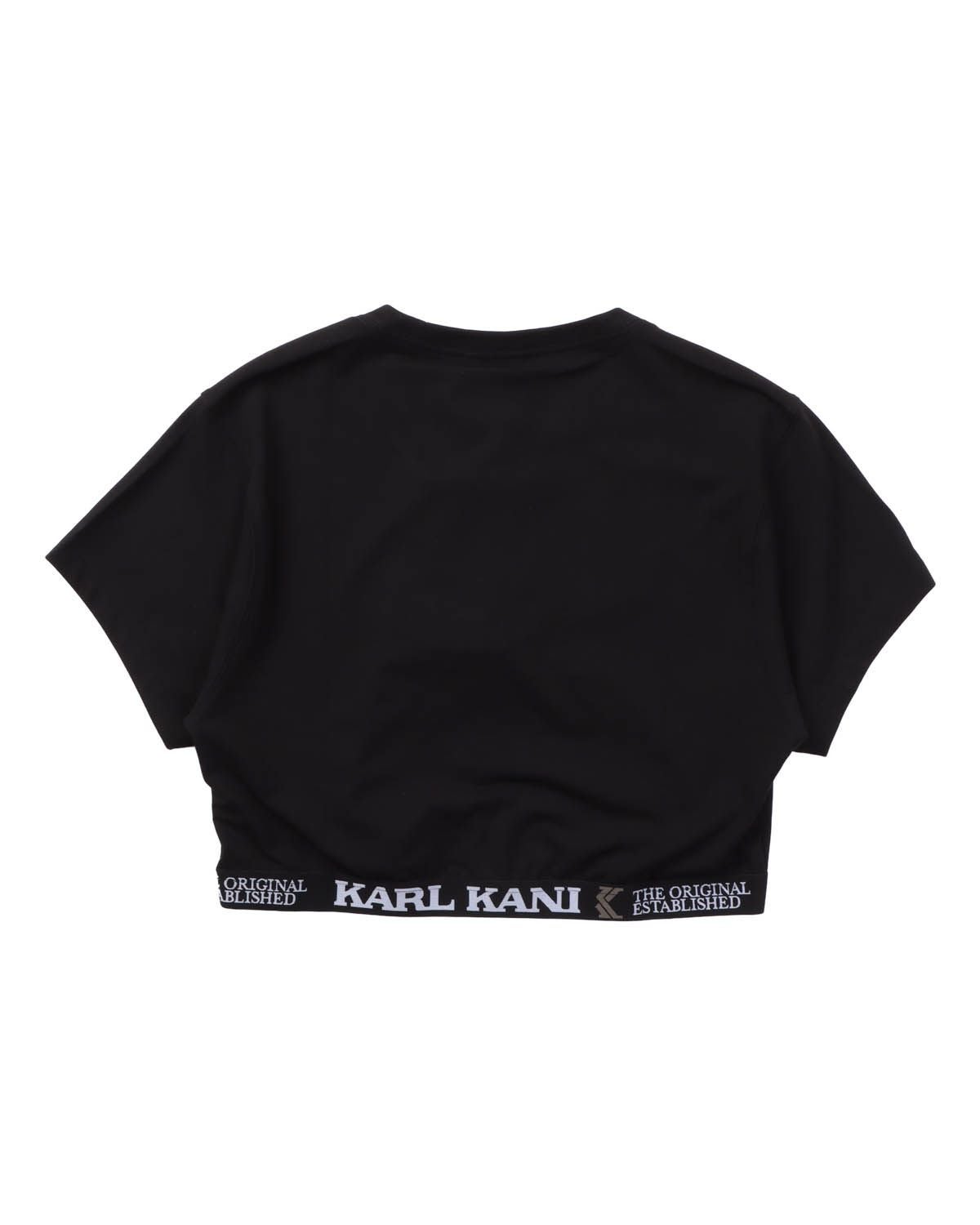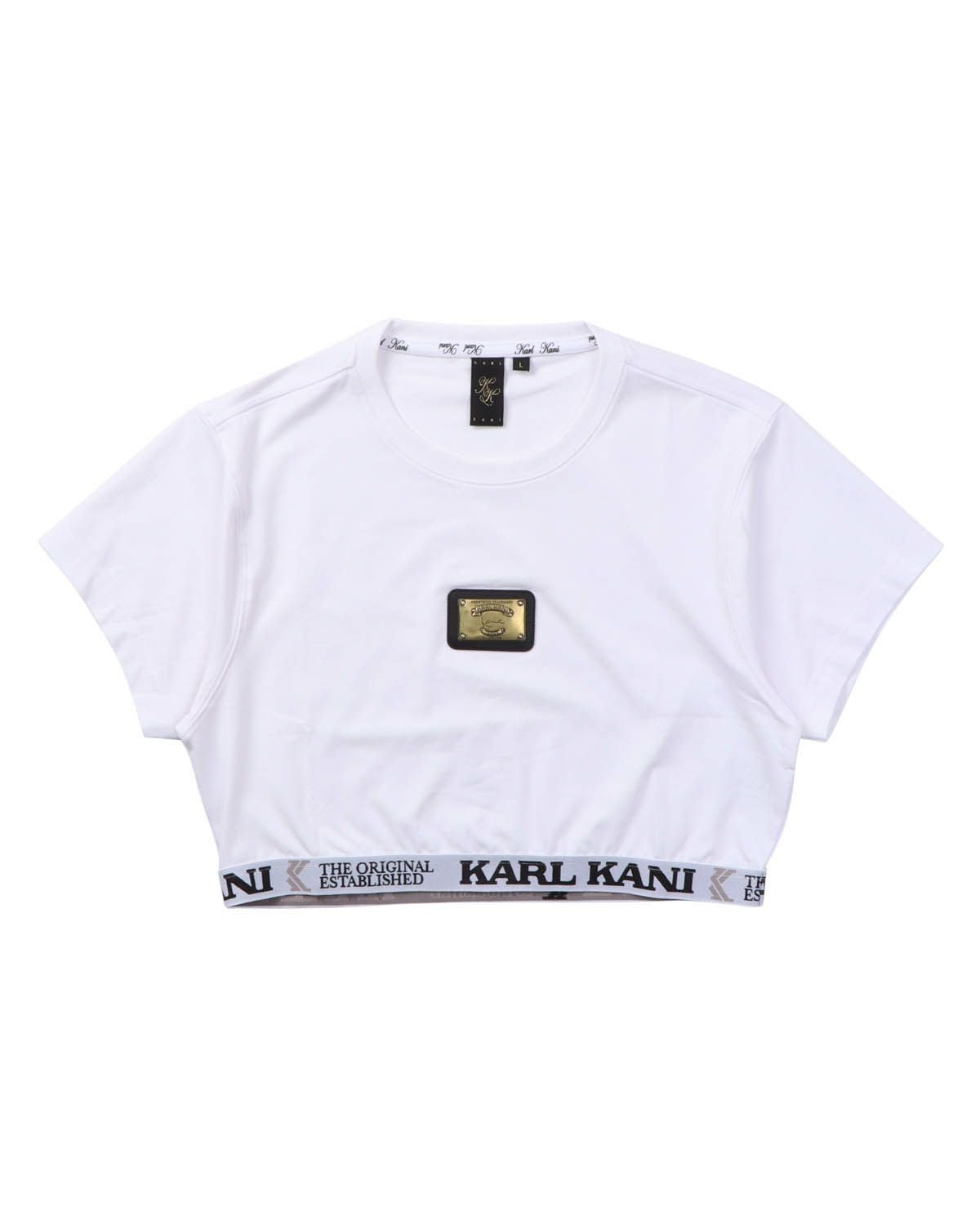 [Karl Kani] ウィメンズ 接触冷感 ロゴ テープ使い ショート丈 プレート Tシャツ