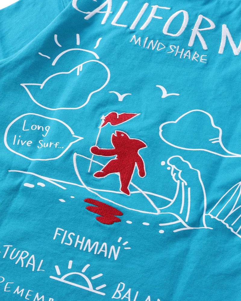 ・サーフィンを楽しむフィッシュマンのラフでリラックスした雰囲気が可愛らしく、ナチュラルで抜け感のあるサーフテイストを感じられる一枚です。