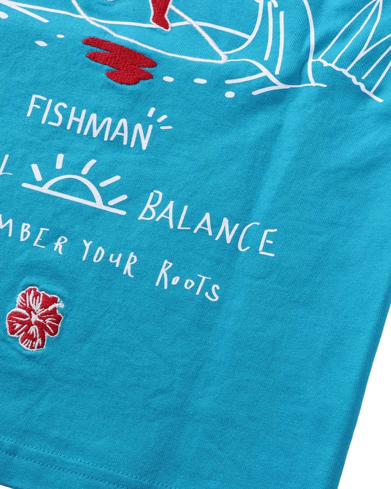 ・フィッシュマンやハイビスカスなどは刺繍で丁寧に表現。プリントと刺繍を組み合わせた遊び心のあるデザインに仕上がっています。