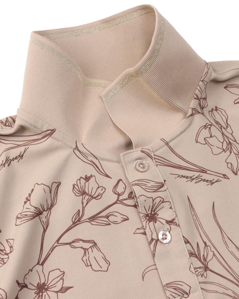 商品名:ドライ UVカット フラワー アート 総柄 ポロ