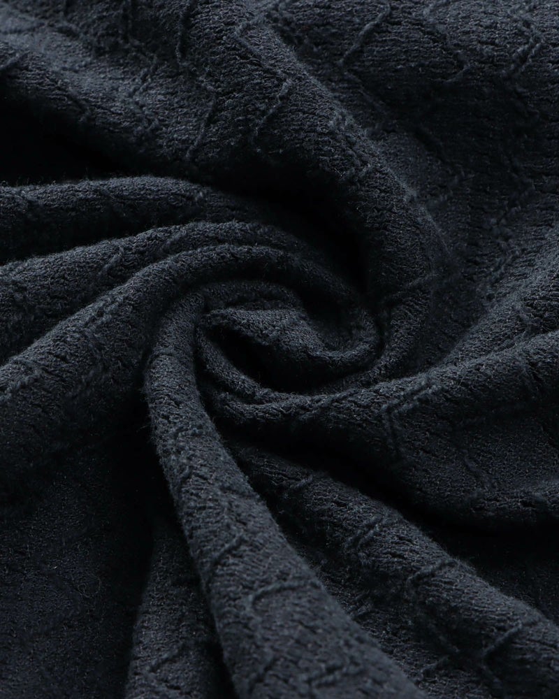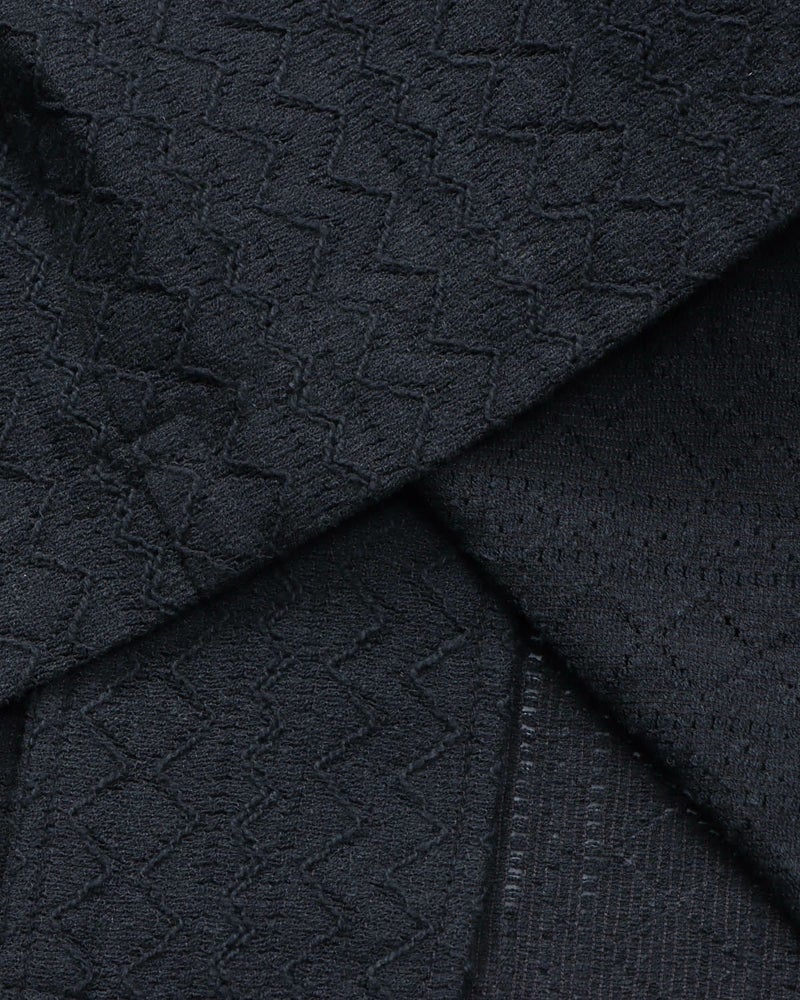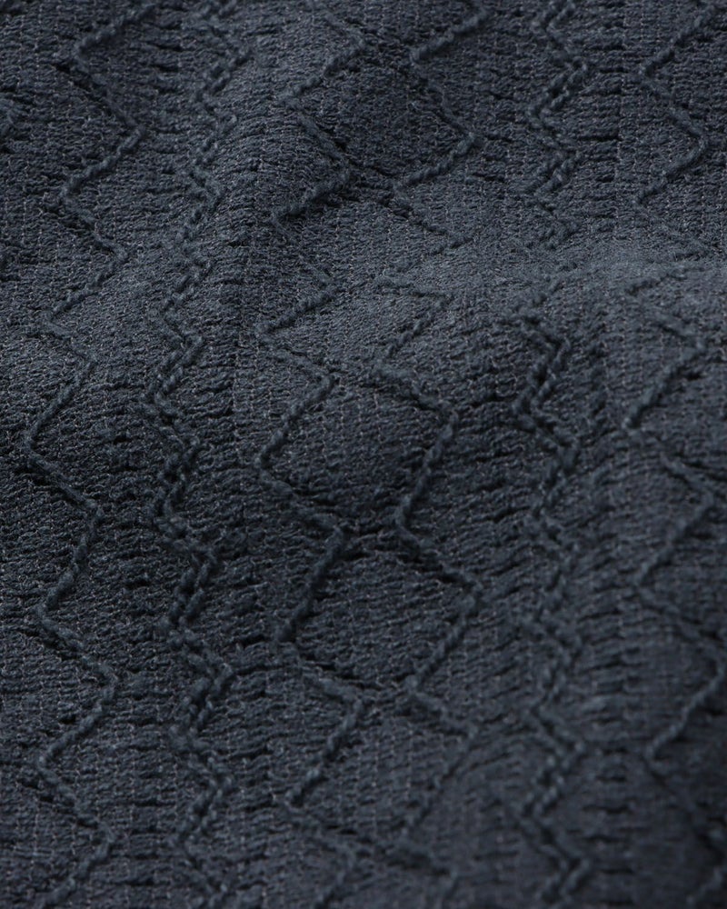 透け感のある繊細な編み模様が、肌に心地よい風を通しながら、ほんのりとした抜け感を演出。見た目にも涼やかで、湿度の高い日でも軽やかに着こなせます。