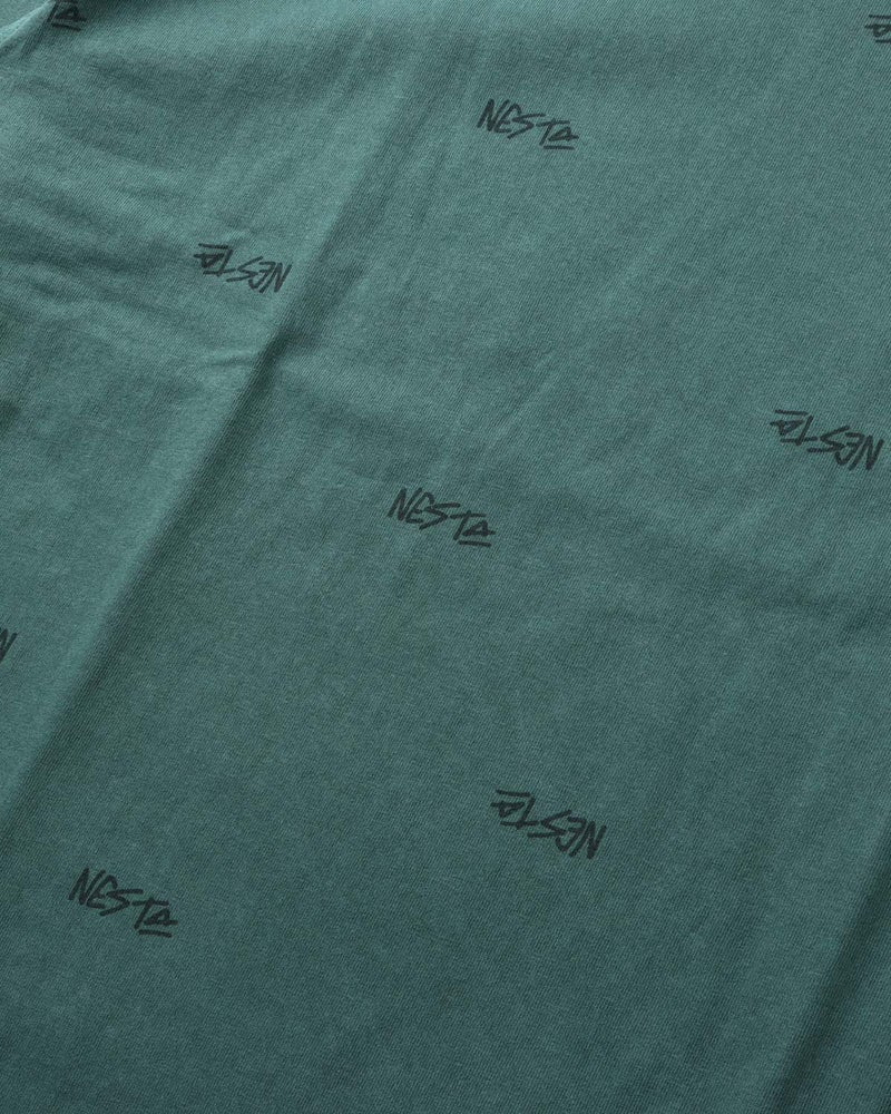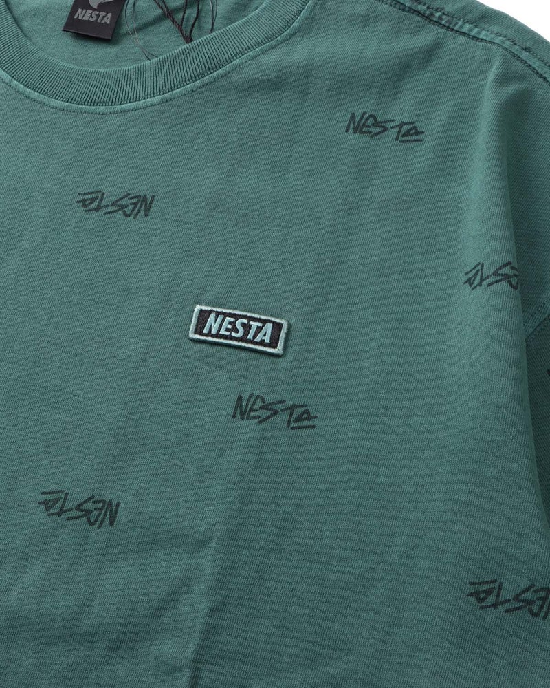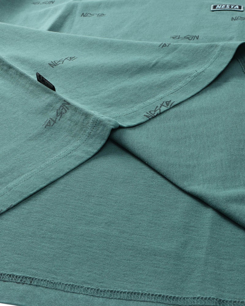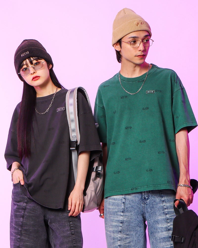 ・胸元のワッペンや、さりげなく入ったロゴ総柄プリントがアクセントになり、シンプルながら存在感のあるデザインに。