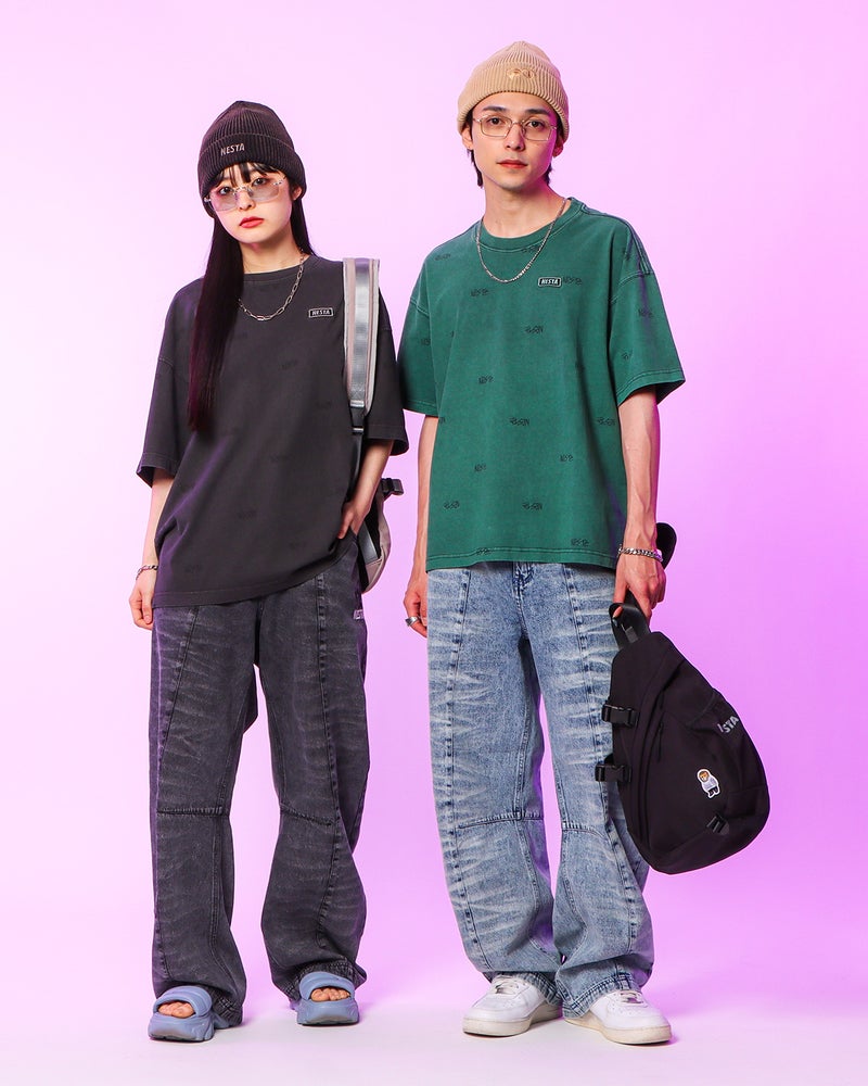 ・エージング加工を施した風合いと、ゆったりとしたリラックスシルエットが、古着のようなこなれた表情に仕上がっています。