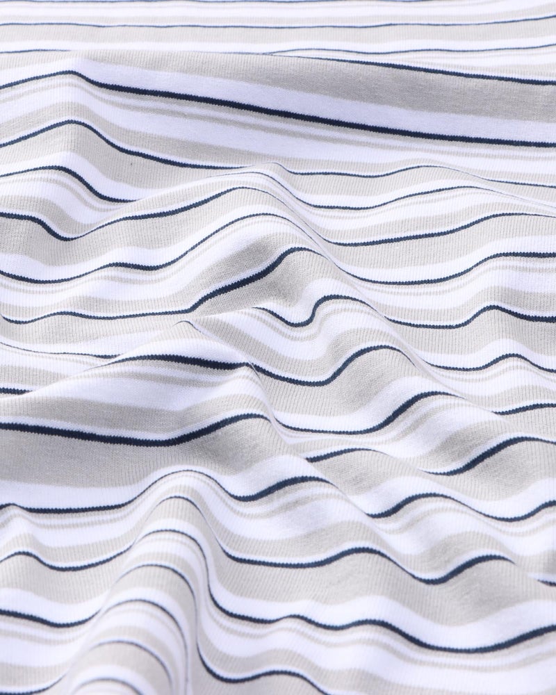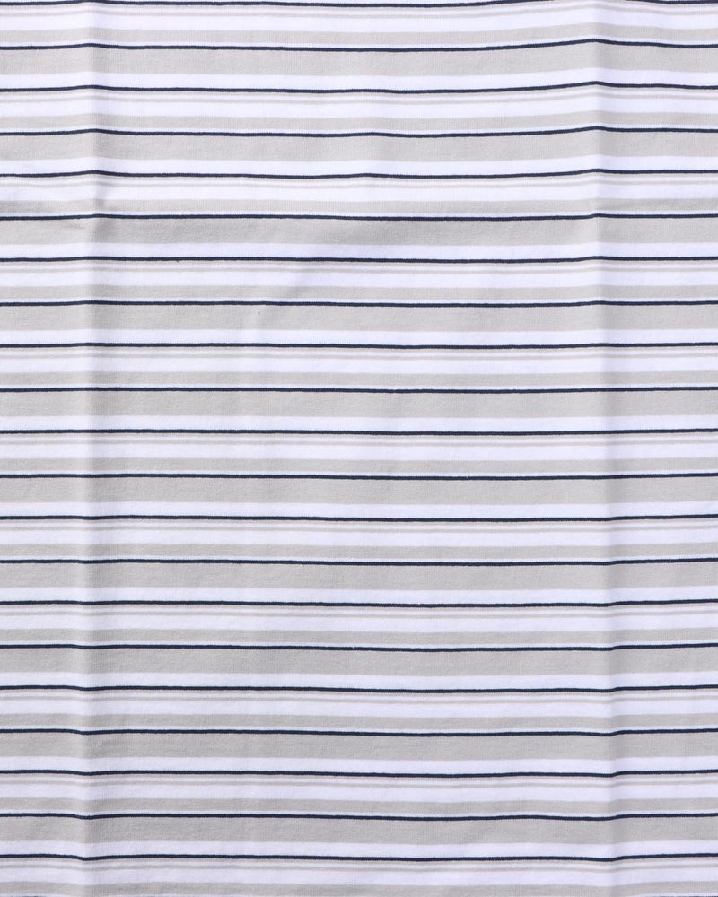 ・レトロな雰囲気のマルチボーダーに、グレーとネイビーの落ち着いたカラーリングを掛け合わせることで、どこかモダンな印象に仕上げています。