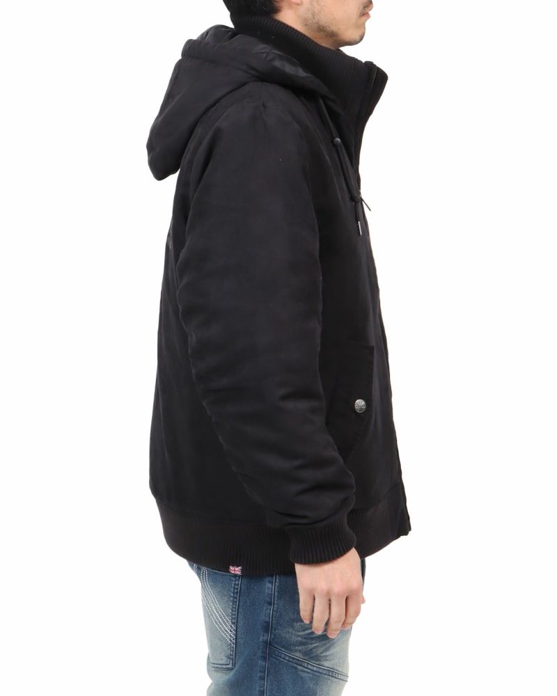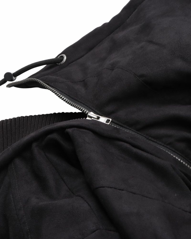 見た目も暖かな季節感たっぷりポリスウェード素材を使用。フード脱着可能でフードを外すとMA-1に切り替わる2way仕様に。