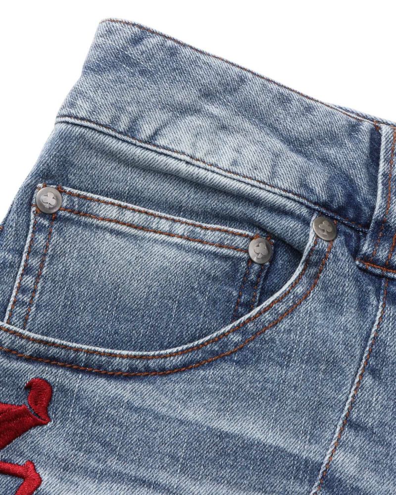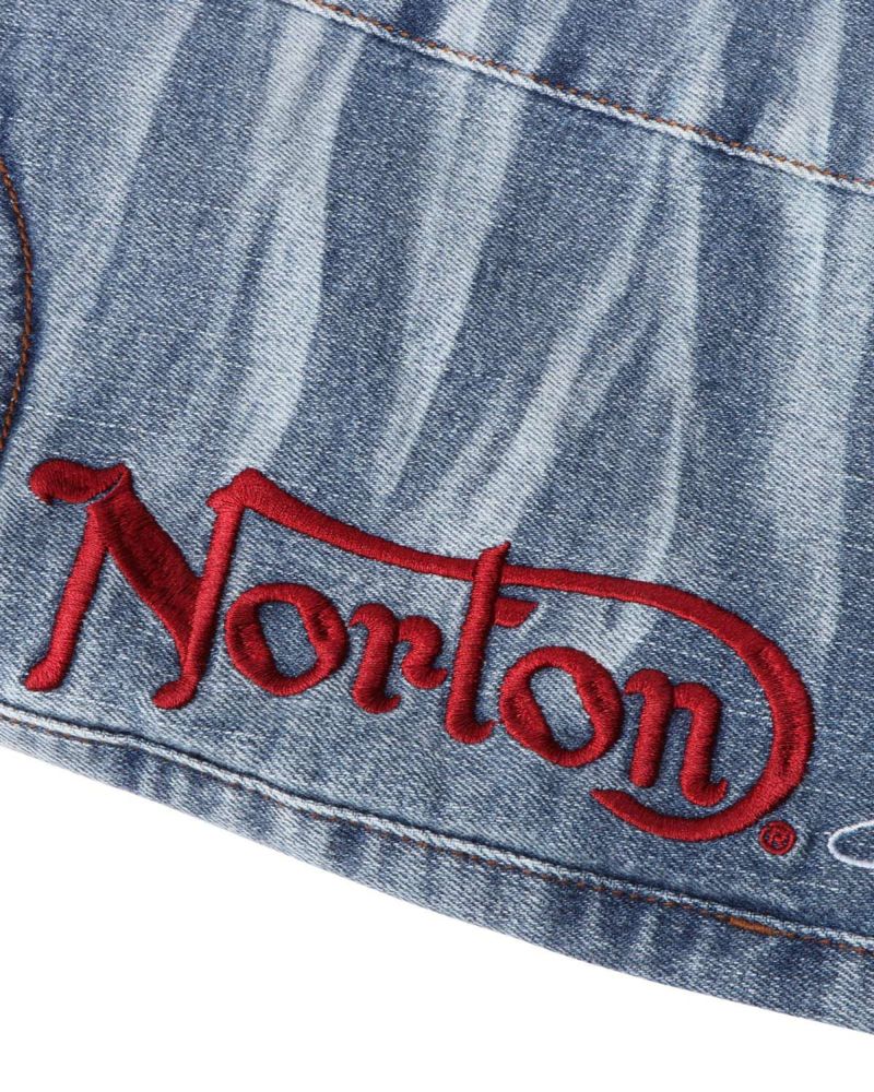 存在感のあるイーグルモチーフの抜染が目を惹くNortonならではのMAXデニムショーツ。
