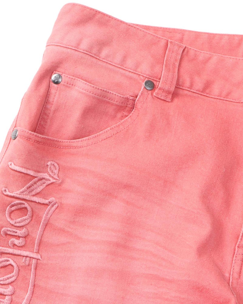淡いカラーが印象的なデニムパンツ。