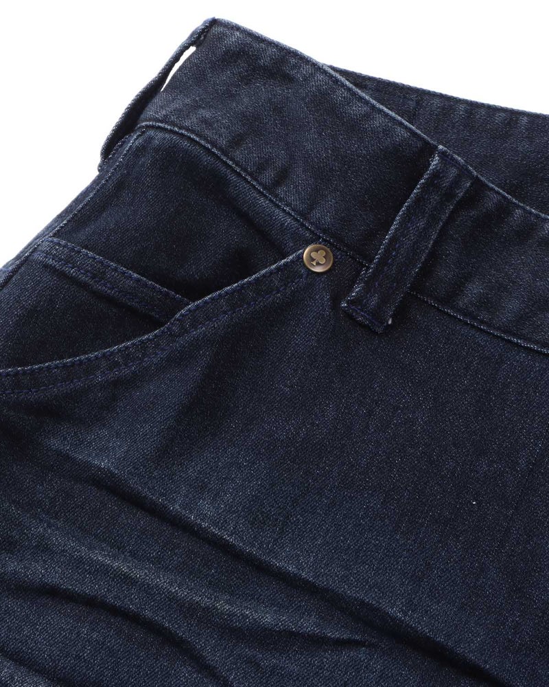 ・ストレッチデニム素材を使用しており、柔らかな肌触りと優れた伸縮性を兼ね備え、着心地は非常に快適。体の動きに合わせてやさしく伸び、動きやすさも抜群です。