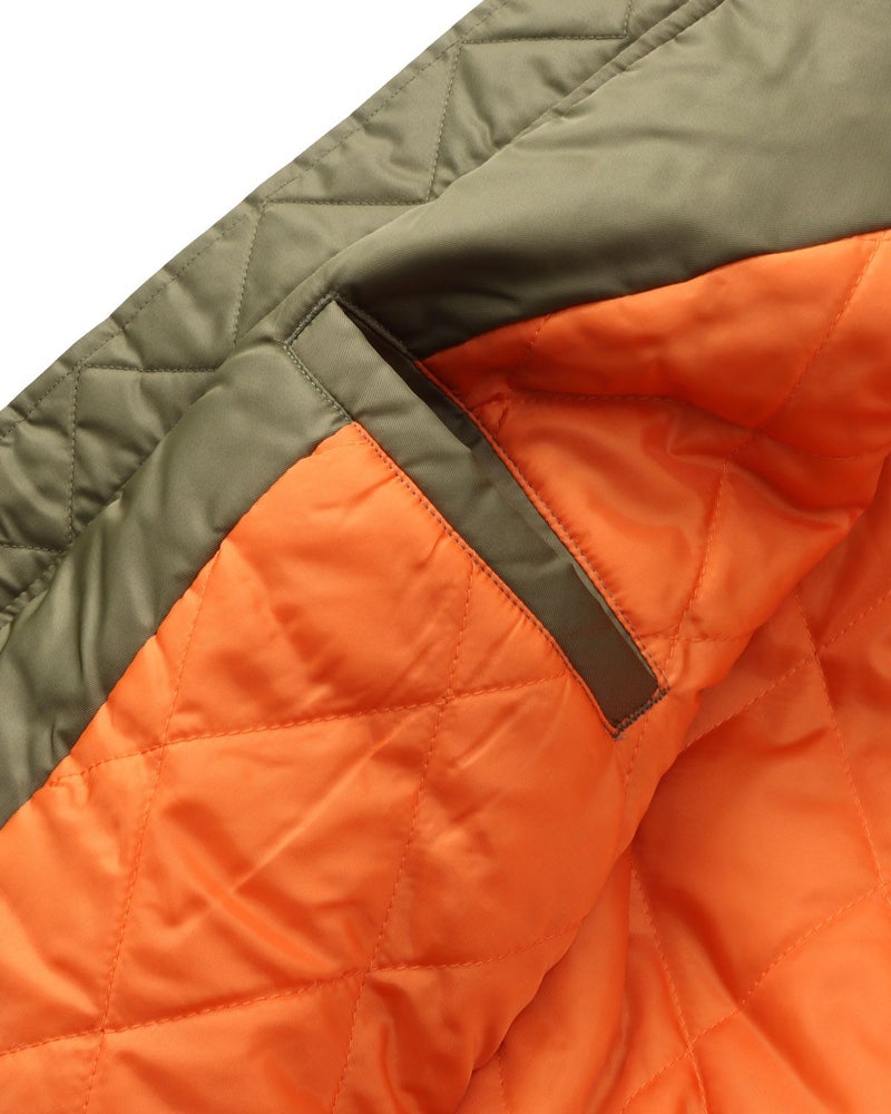 表地は丈夫で軽い着心地が魅力のナイロンツイル素材を採用。程よい光沢感が、カジュアルな中にも上質な重厚感を演出します。