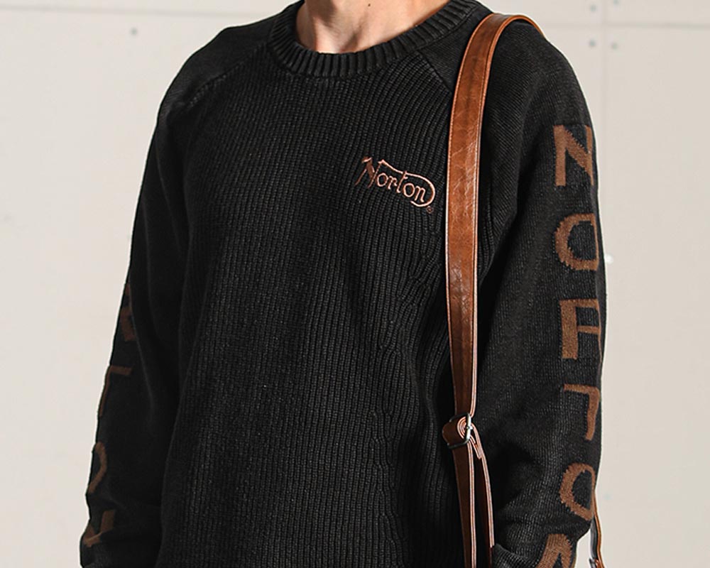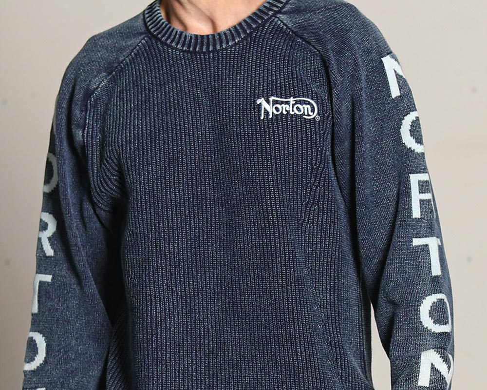 [Norton] ウォッシャブル 袖ロゴ コットン ウォッシュ クルー ニット