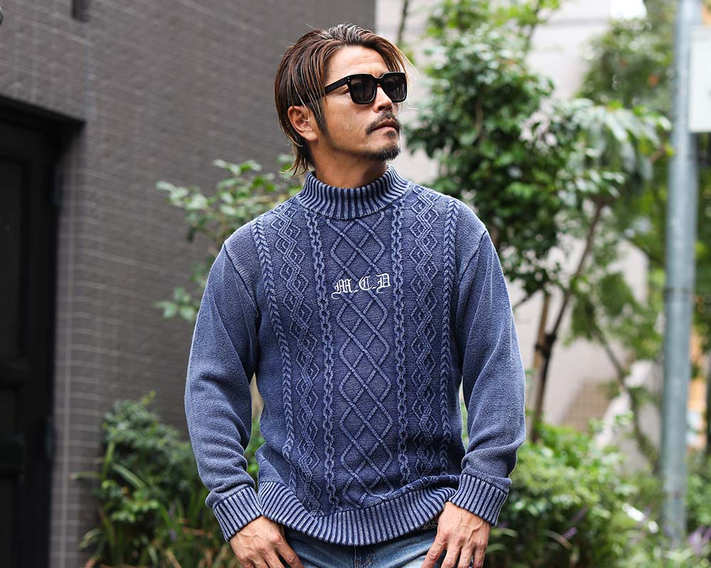 ウォッシュ加工で魅せるヴィンテージハイネックニット