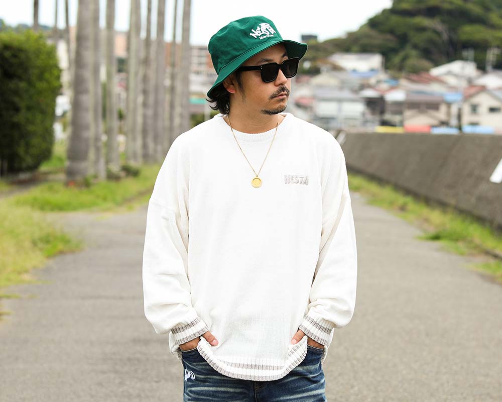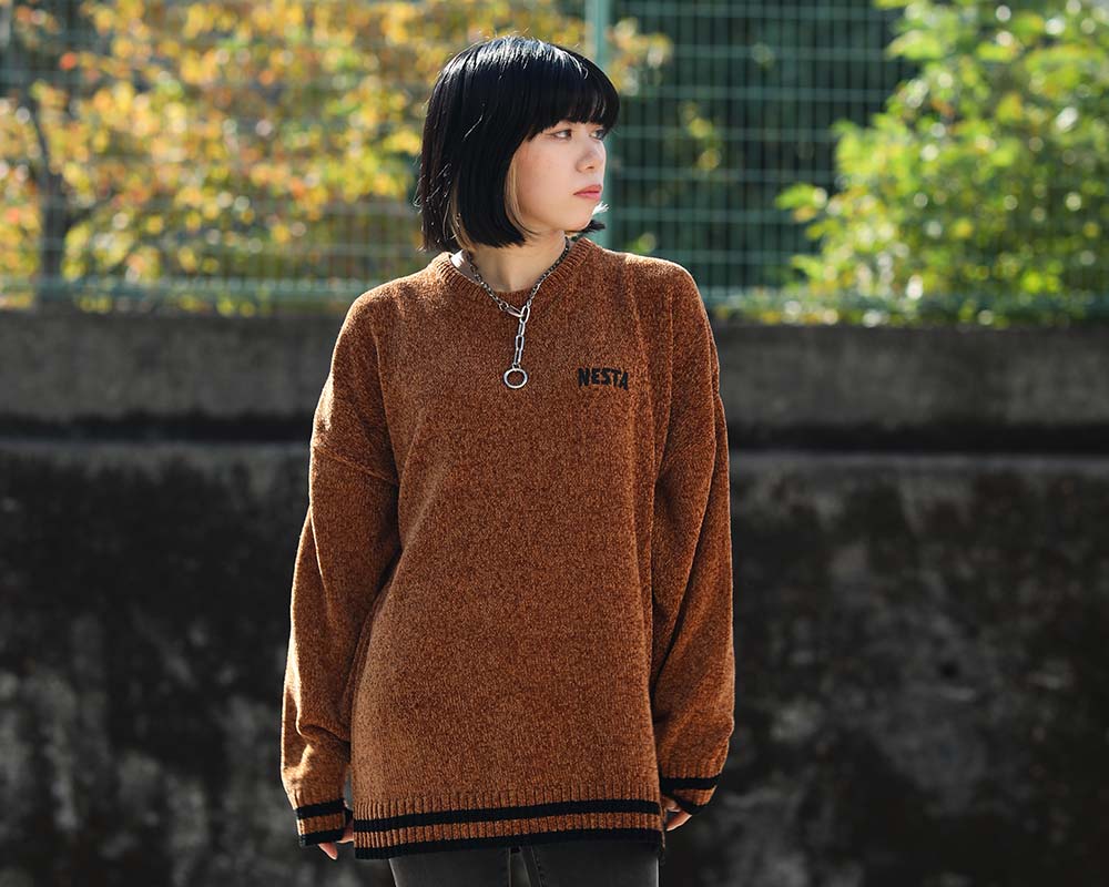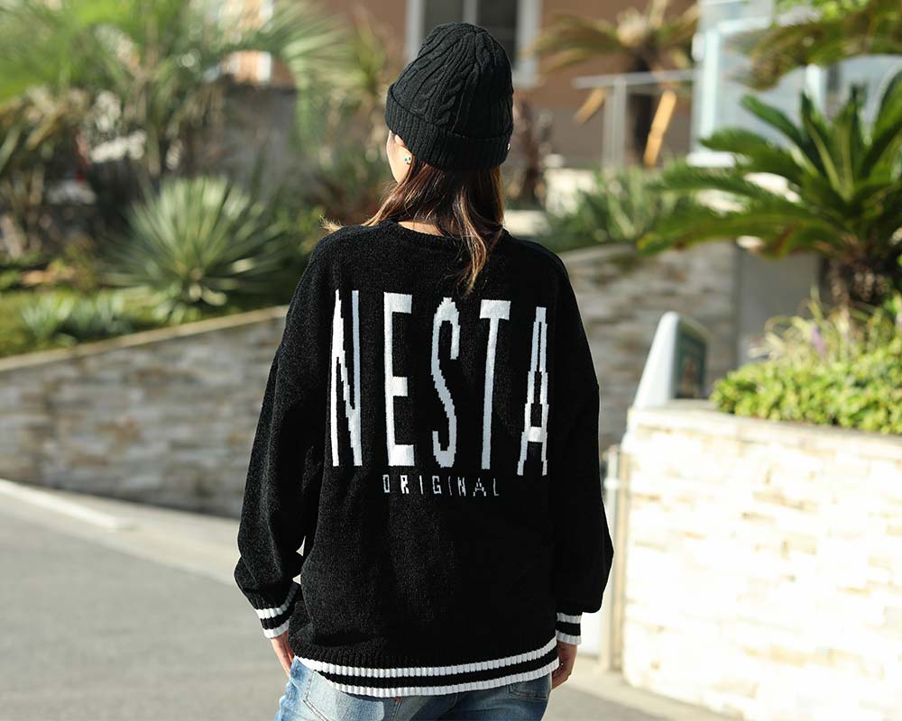 [NESTA BRAND] ウォッシャブル モール ジャカード ビッグ ロゴ クルーニット