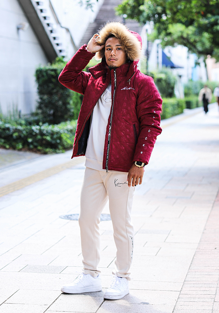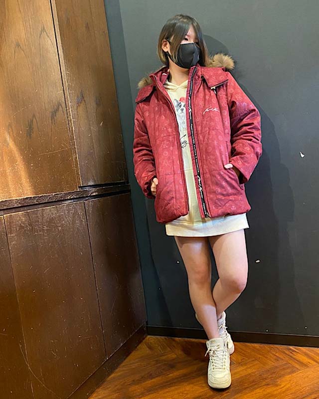 KANI珠玉のモノグラムシリーズ。 必要なモノ以外を削ぎ落とし、ベーシックなオトナなシルエットを実現すると共に、モノグラム柄、リアルファー、衿リブロゴ、袖刺繍の各ポイントをカッコよく魅せるデザインに仕上げています。暖かみのあるワインカラーも注目。