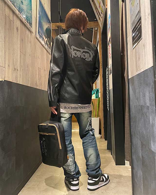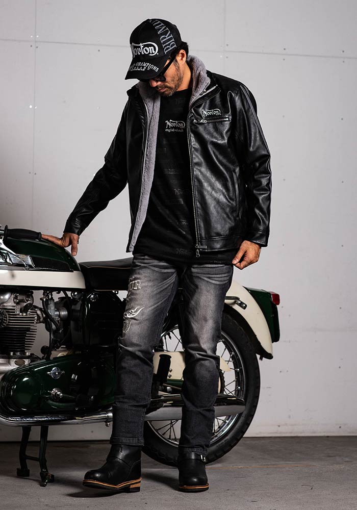 [Norton] ライナーベスト付き 袖ライン PU ライダース