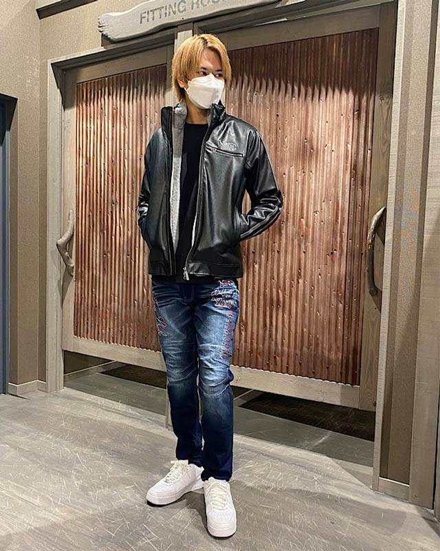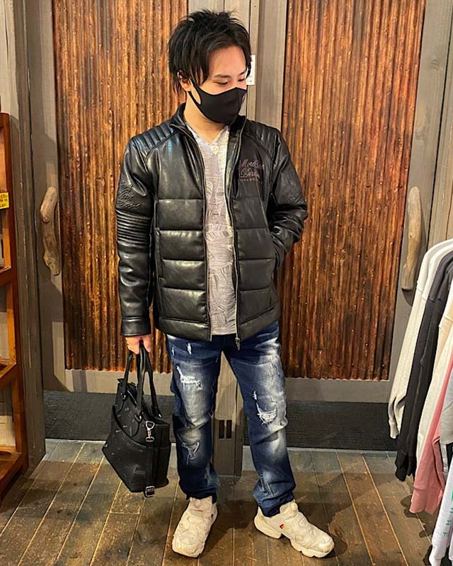 BUYPUとエンボス加工でMCDの武骨さを表現した1枚。スタンドジャケットタイプなので、インナーに様々なアイテムを合わせることが可能です。