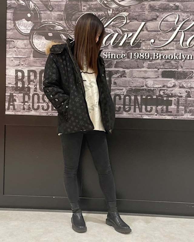 BUY必要なモノ以外を削ぎ落とし、ベーシックなオトナなシルエットを実現すると共に、モノグラム柄、リアルファー、衿リブロゴ、袖刺繍の各ポイントをカッコよく魅せるデザインに仕上げています。