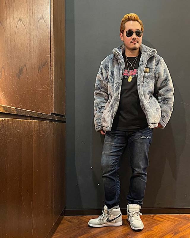 223K1704 [Karl Kani] モノグラム 総柄 ショートファー ジャケット