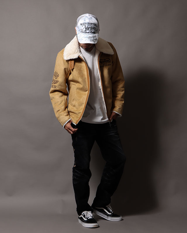 223N1701 [Norton] PU ライン フェイクムートン ジャケット