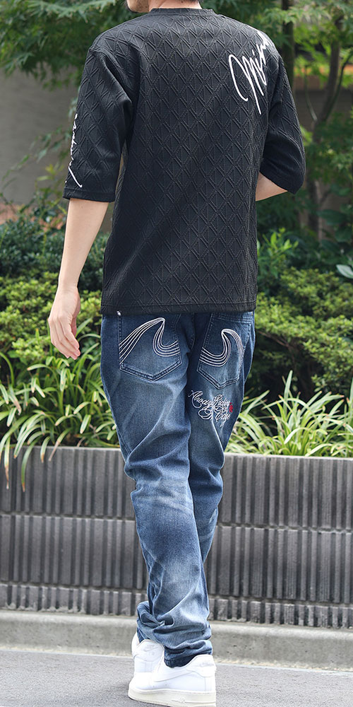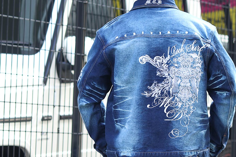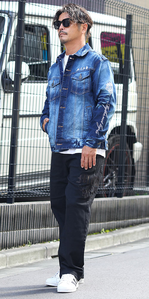 ストレッチ バックタトゥー 刺繍 デニムジャケット