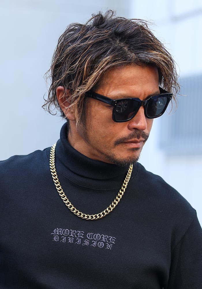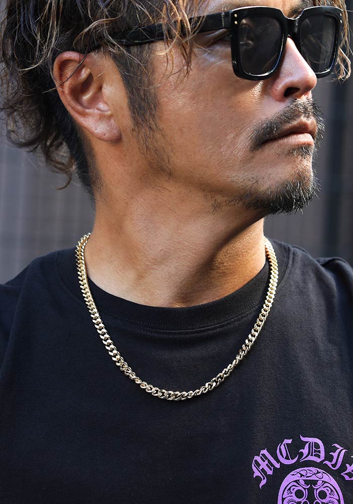 存在感のあるやや大振りの喜平チェーン。定番で使いまわしのしやすいタイプ。