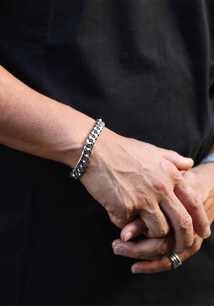2つの円形リングを使用したブレス。抜け感もあり男女共に使いやすいアイテム。