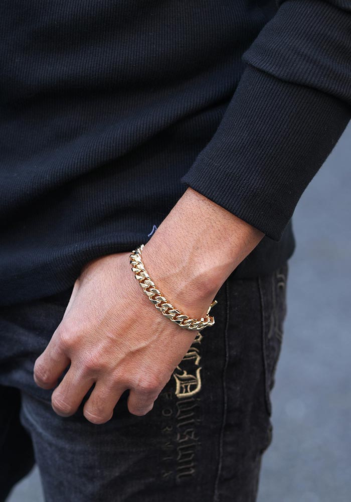 大好評10mm喜平チェーンから新たにGOLDカラーが登場。ラグジュアリーな印象を演出。