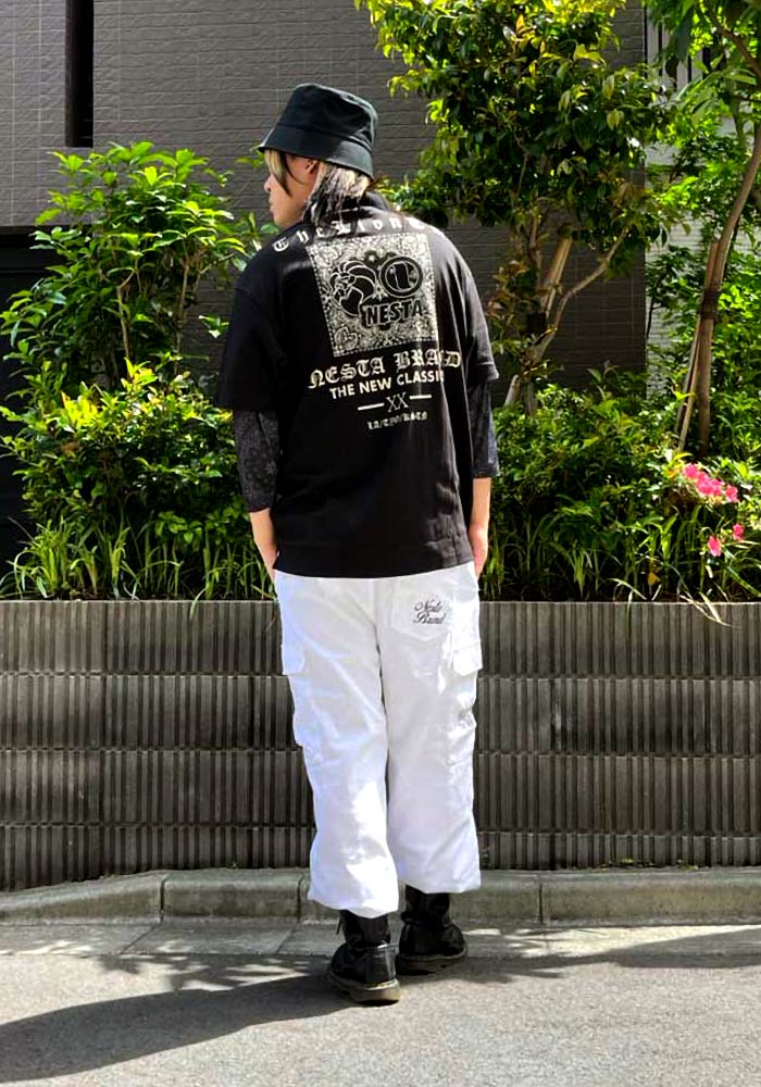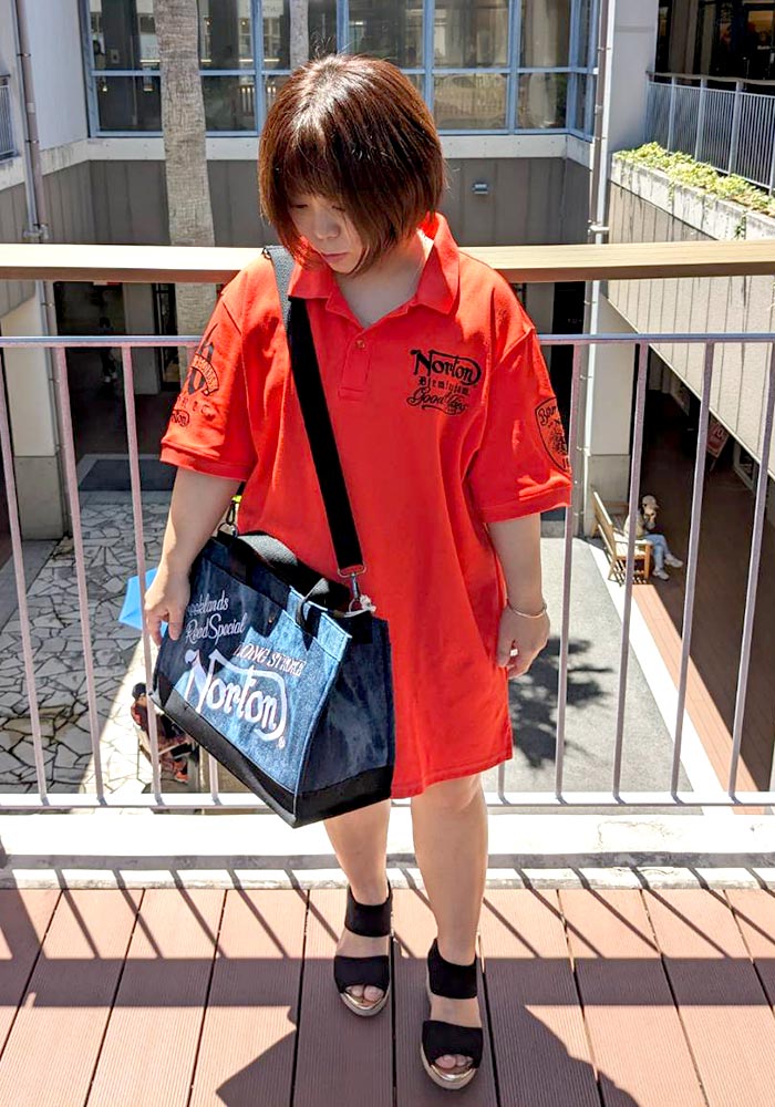 バッグも後ろのデザインにかからず使用できる前掛けが可能なアイテムをチョイスしました。