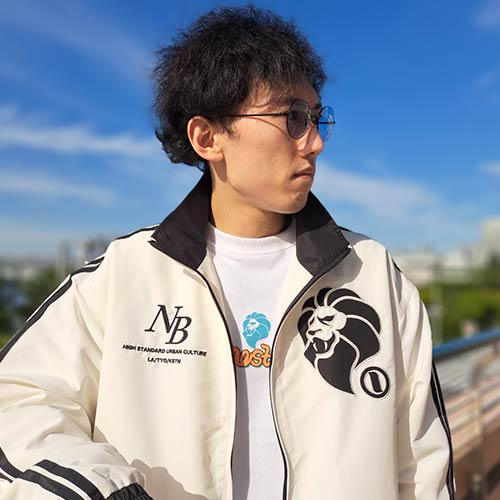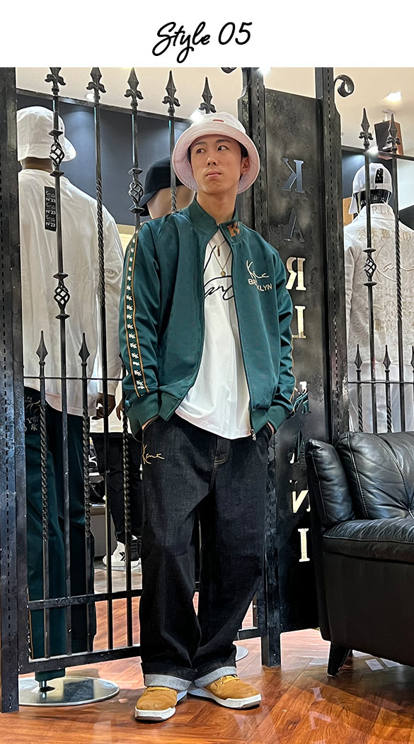 RYOTA (KARL KANI 大阪店) ジャージ素材のジャケットにオーバーサイズのデニムでどんなシーンでもアクティブに動けるスタイリングにしてみました。
