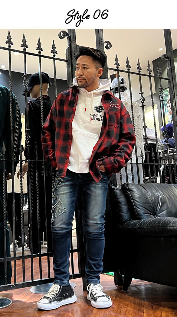 RYO-MA (KARL KANI 大阪店) アウトドアっぽくチェックシャツに動きやすいプルパーカーをインナー合わせカジュアルなアウトドアスタイルをイメージしました。