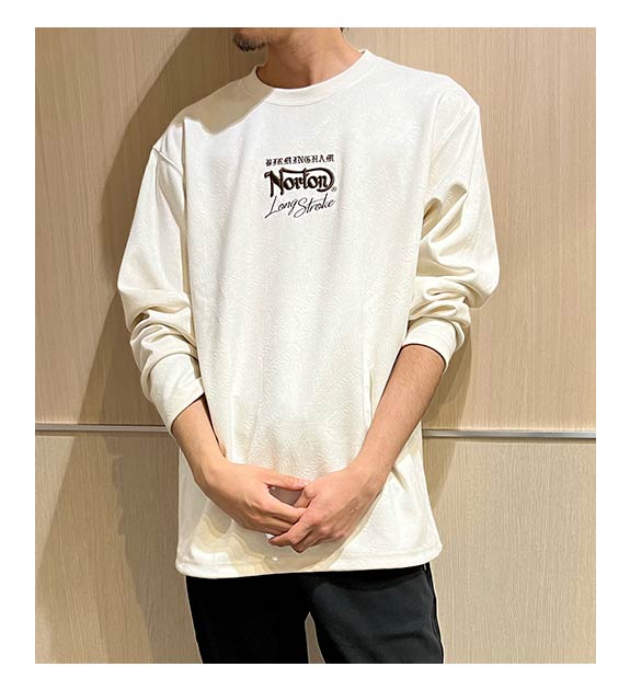 涼やかに秋の街並みを満喫するイメージでコーディネートしました。Jacketは軽量・撥水加工で急な天候不良にも対応出来るモノを、インナーには防寒対策で厚すぎないトレーナーを合わせています。トップスを柔らかなオフカラー系統で纏めたので、パンツは少しアグレッシブなカラーとデザインで。