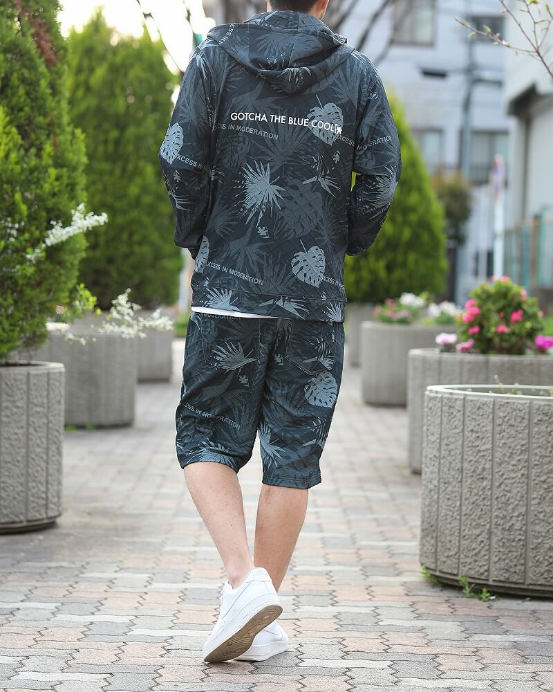 "ちょっとそこまで…"と紫外線対策をせずに外に出ていませんか? 夏の紫外線は思っている以上に強いもので、ほんの少しの外出でもUVケアが大切。 ご近所のちょっとしたお出かけには、着心地重視で快適に過ごせるセットアップが◎ 見た目も着心地も爽やかなリーフ柄セットアップで、優れた吸水速乾性と通気性をもち、 湿度の高い日本の夏でもドライで爽やかな着心地をキープします。