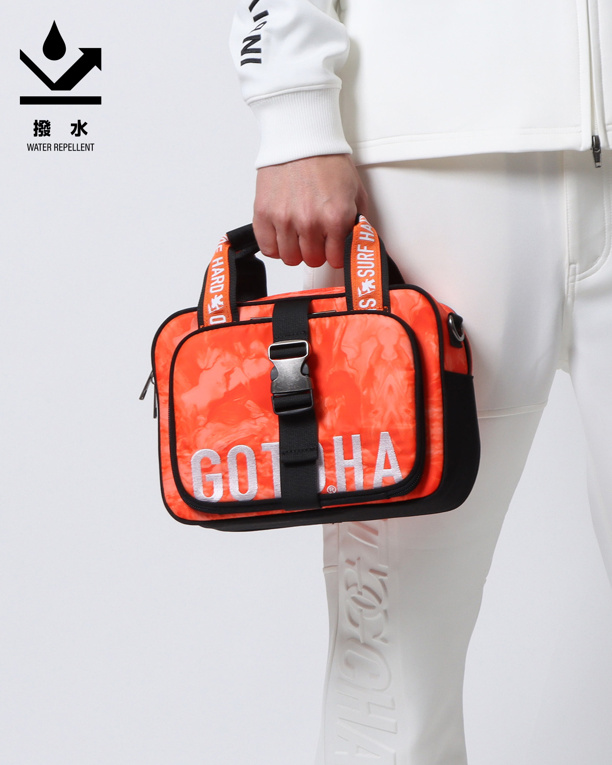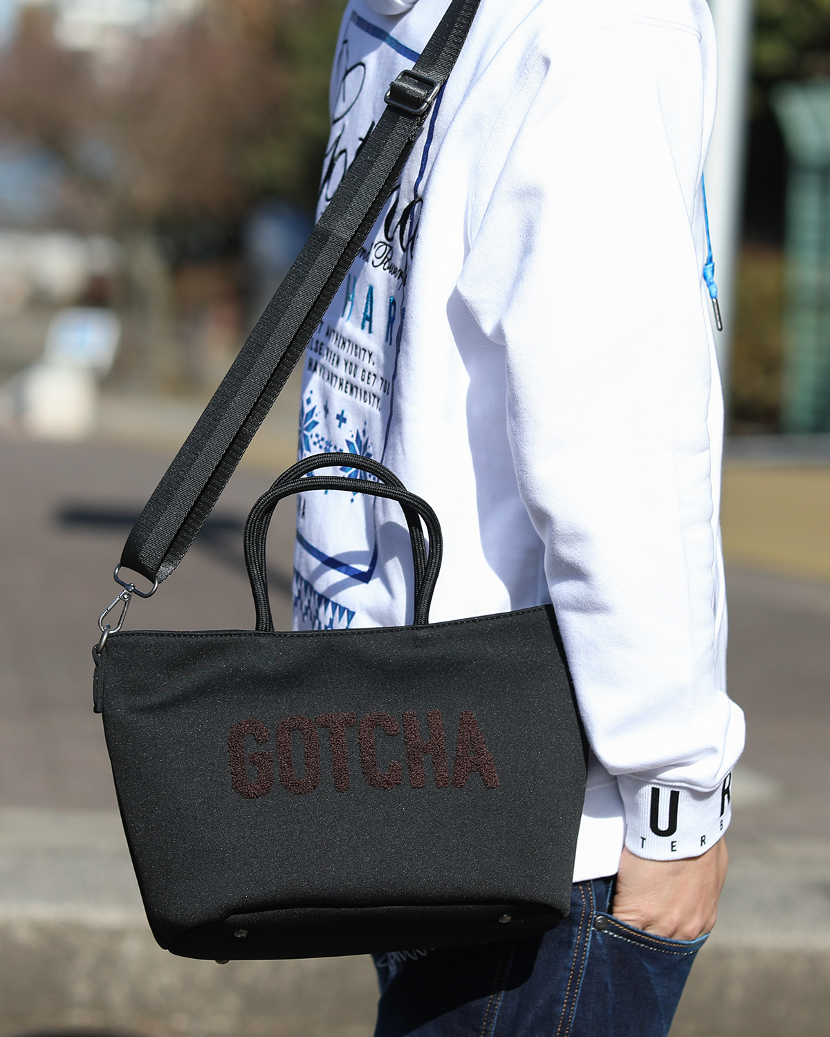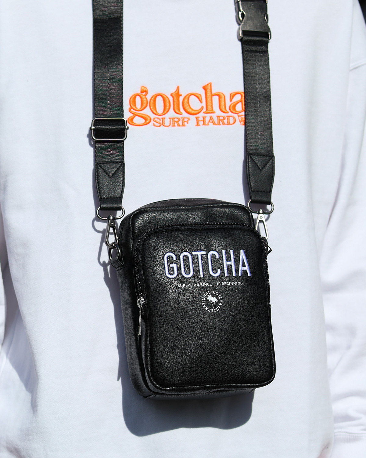 BUY↳表から裏へ跨るように入ったGOTCHAのロゴをバッグと同じPU素材で叩きつけ、インパクトがありながらも使いやすいバッグに仕上げました。