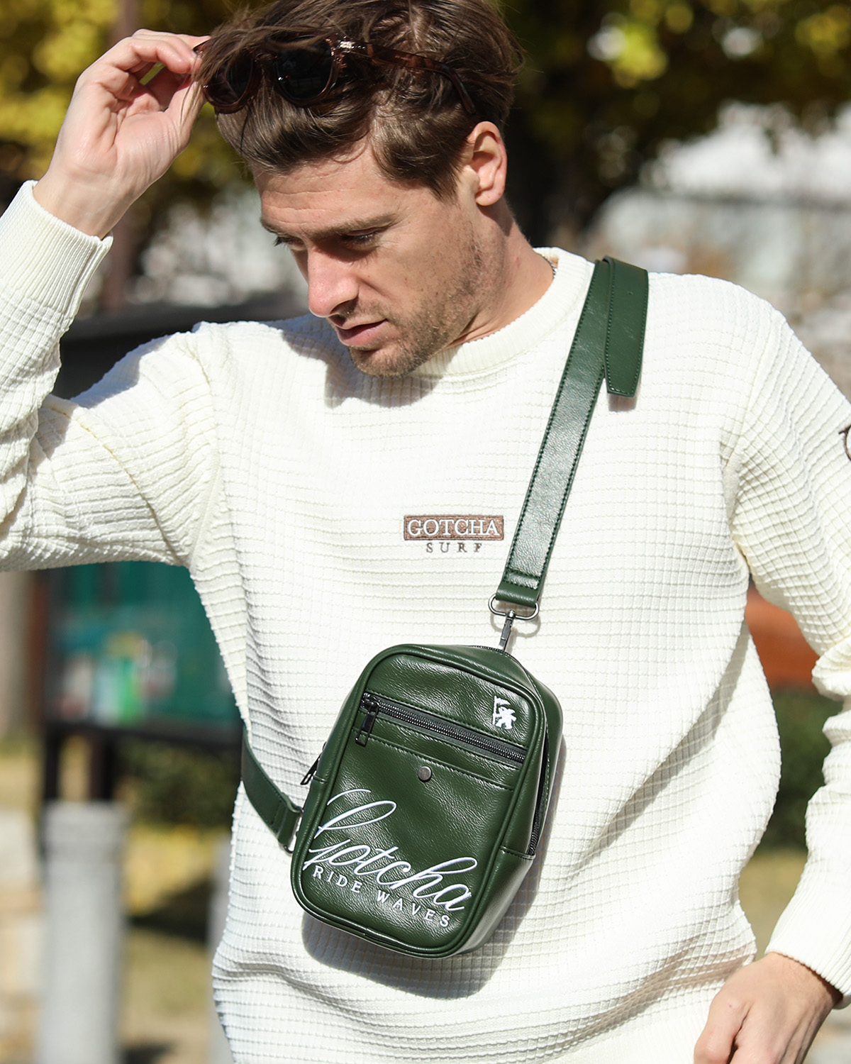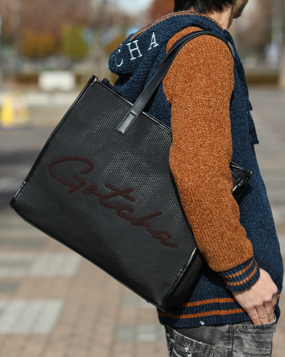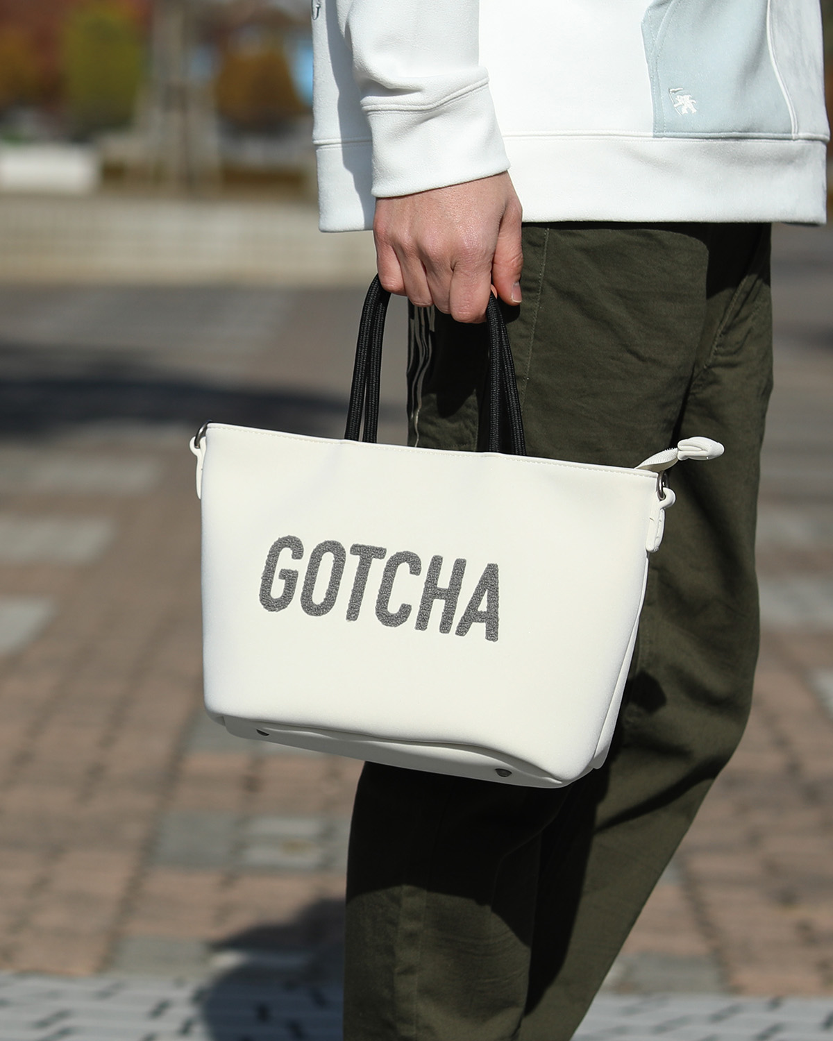 BUY↳表から裏へ跨るように入ったGOTCHAのロゴをバッグと同じPU素材で叩きつけ、インパクトがありながらも使いやすいバッグに仕上げました。