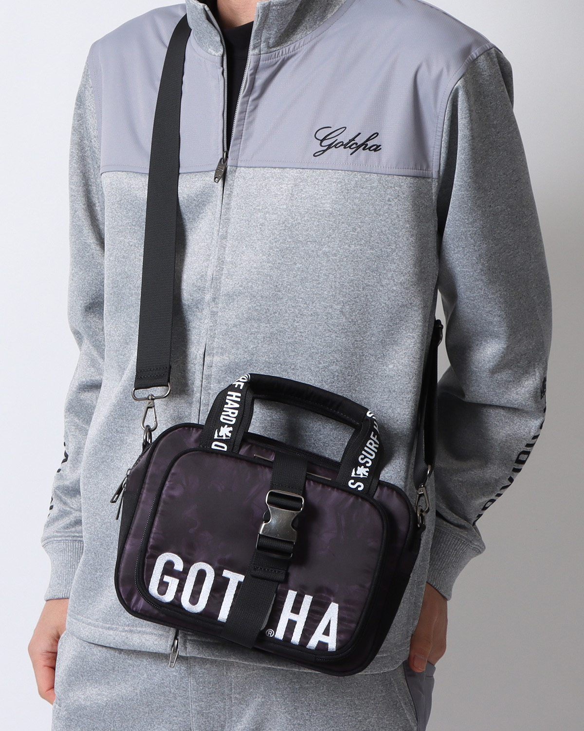 BUY↳ファスナーを挟んで大きくGOTCHAのロゴを施したボディバッグ。