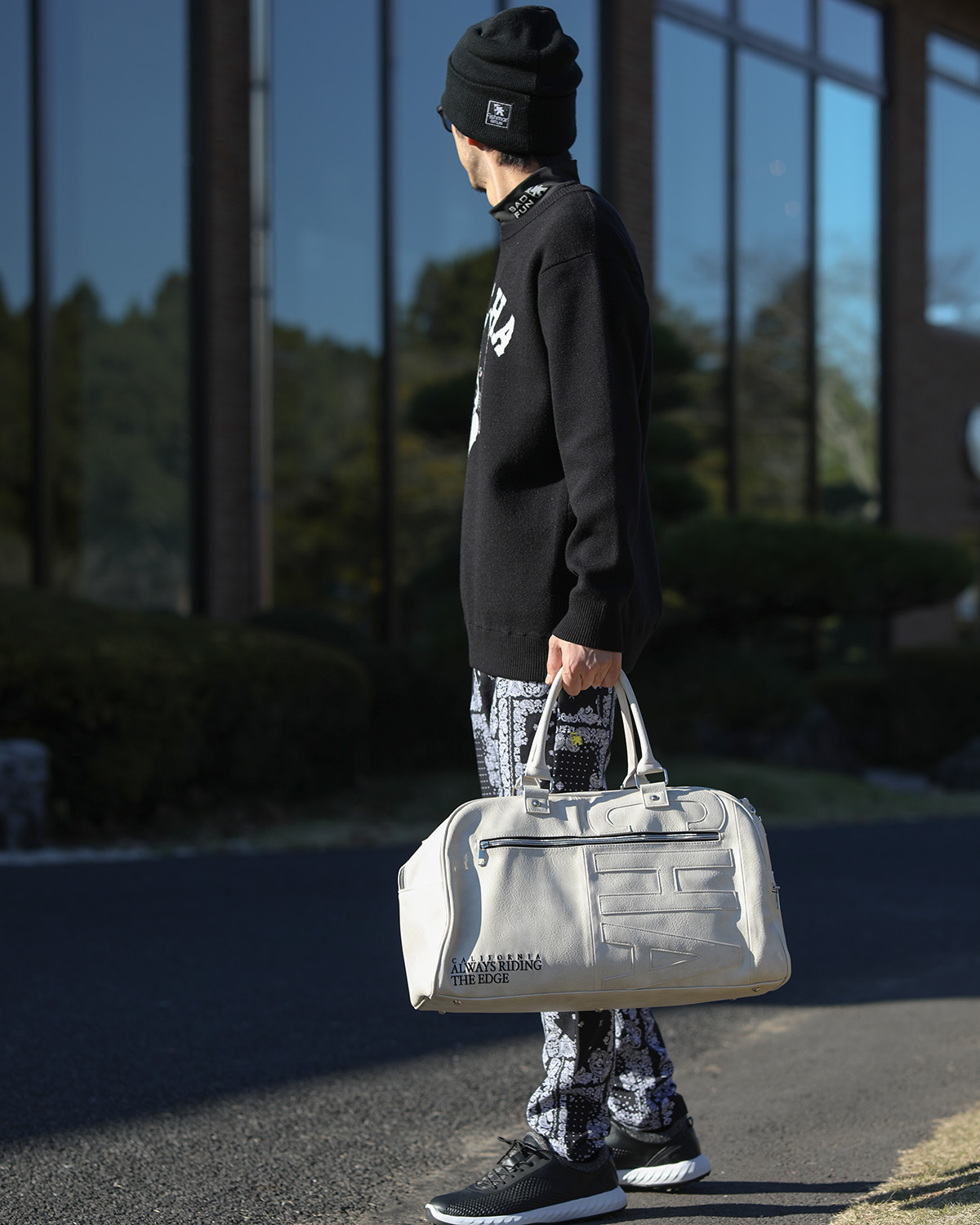 ↳表から裏へ跨るように入ったGOTCHAのロゴをバッグと同じPU素材で叩きつけ、インパクトがありながらも使いやすいバッグに仕上げました。 ↳底板・底鋲付きなので底面の磨耗を防ぎ、荷物の重さによる型崩れを防ぎます。 ↳ポケットは全部で7つで収納力も◎ ↳2泊3日~3泊4日の大容量サイズで旅行などのバッグとしてはもちろんトレーニングやジム・ゴルフ・アウトドアなど様々な場面で活躍します!