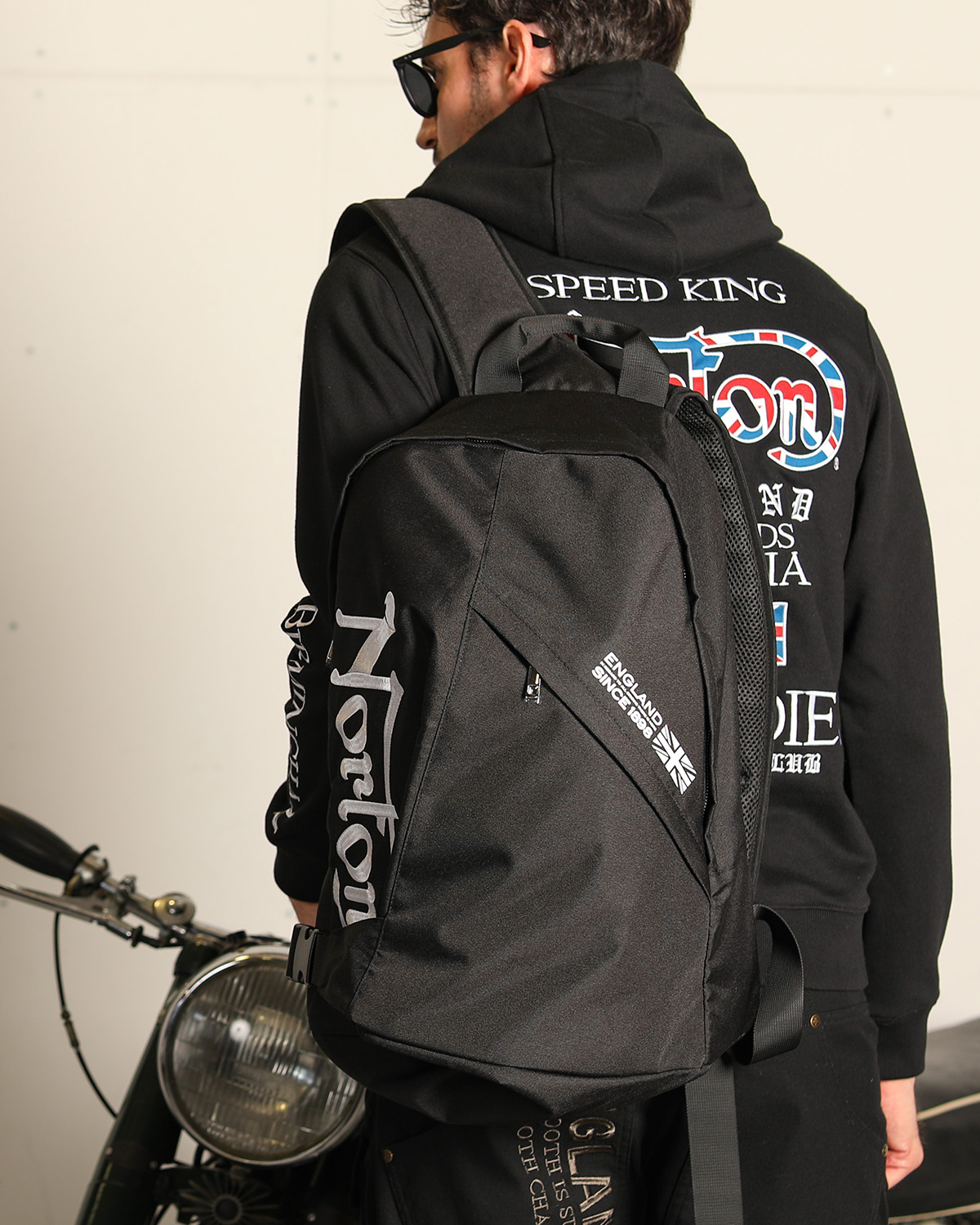 ↳持ち手部分のロゴテープもポイント。ブラックとオレンジの2色展開。