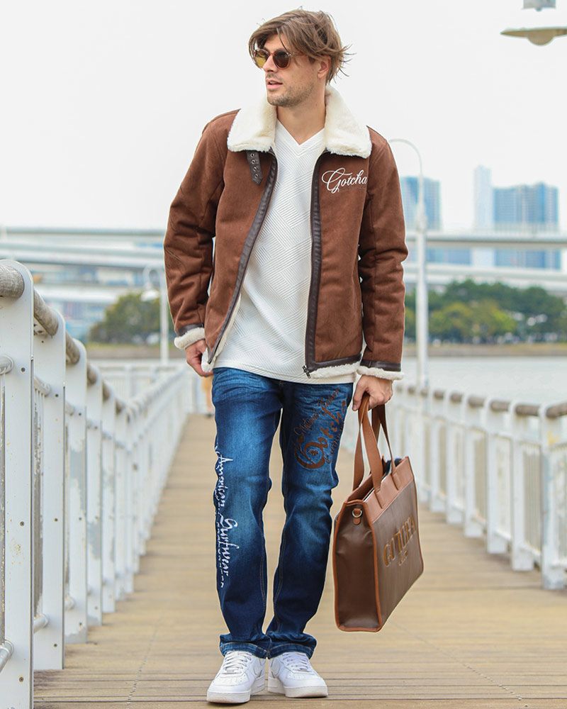 滑らかなタッチと上品な光沢感が魅力のフェイクムートンジャケット。 内側は保温性抜群のボア素材で、襟は折り返しても立てても違った表情が楽しめる。 デニムパンツやカラーパンツなど幅広いボトムスとも好相性。 今年は、ワイドパンツやカーゴパンツを合わせたスタイルがオススメ。